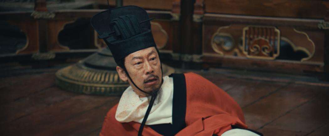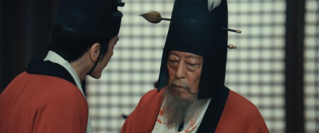 只看见钱弘俶拿了一把小刀子,直接就在朝堂宰杀了何承训。剧中有个细节太好了,就是一脸懵地胡进思被溅了一脸的血。